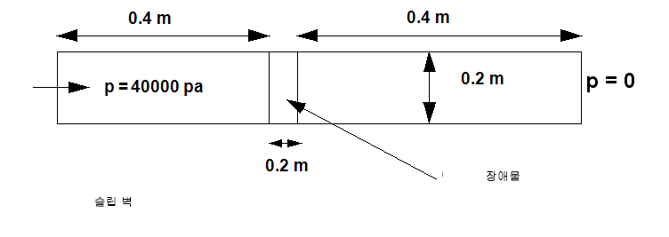 공기는 채널 중심에서 필터(또는 일부 흐름 장애물)을 사용하여 슬립 벽이 있는 3D 채널을 통해 흐릅니다. 벽에 슬립 조건이 있기 때문에 채널의 압력 강하는 장애물로 인한 것입니다.