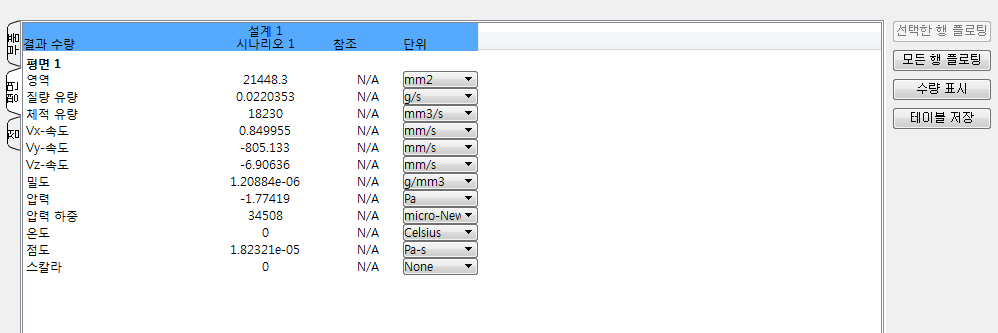 요약 항목(부품, 평면 및 점)에서 테이블 형식 데이터를 바로 검토하려면 요약 값을 클릭합니다. 이렇게 하면 뷰에서 요약 이미지가 숨겨집니다. 창 왼쪽의 탭을 사용하여 표시된 요약 항목 유형 간을 전환할 수 있습니다.