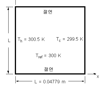 Davis, G. De Vahl 및 Jones, I.P., “Natural convection in a square cavity: a comparison exercise”, Inter. Jour. for Num. Meth. in Fluids, 3, (1983).