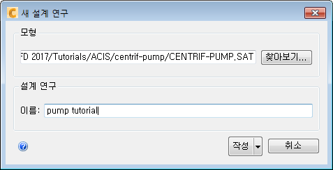 새 설계 연구 대화상자에서 찾아보기를 클릭합니다.