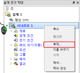 시나리오를 복제하려면 마우스 오른쪽 버튼으로 클릭한 다음 복제...를 클릭합니다.