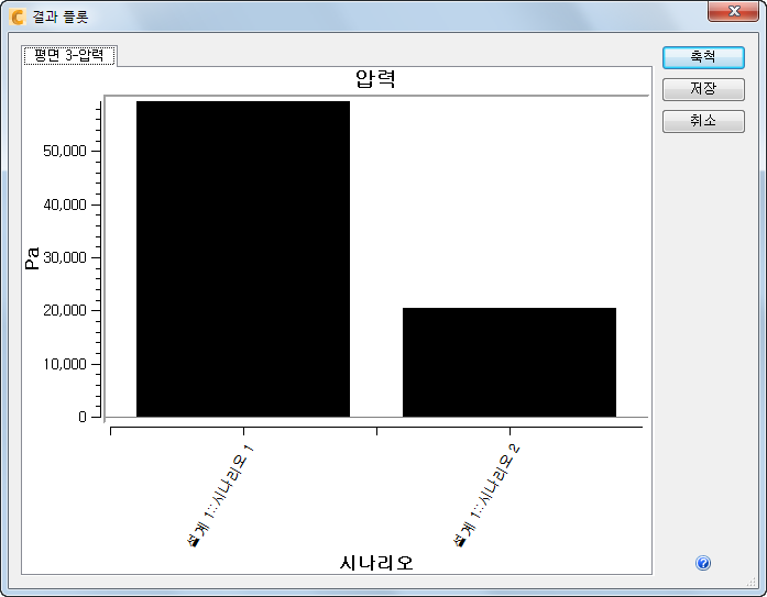 평면 탭에서 두 시나리오의 압력 강하를 비교할 수 있습니다.