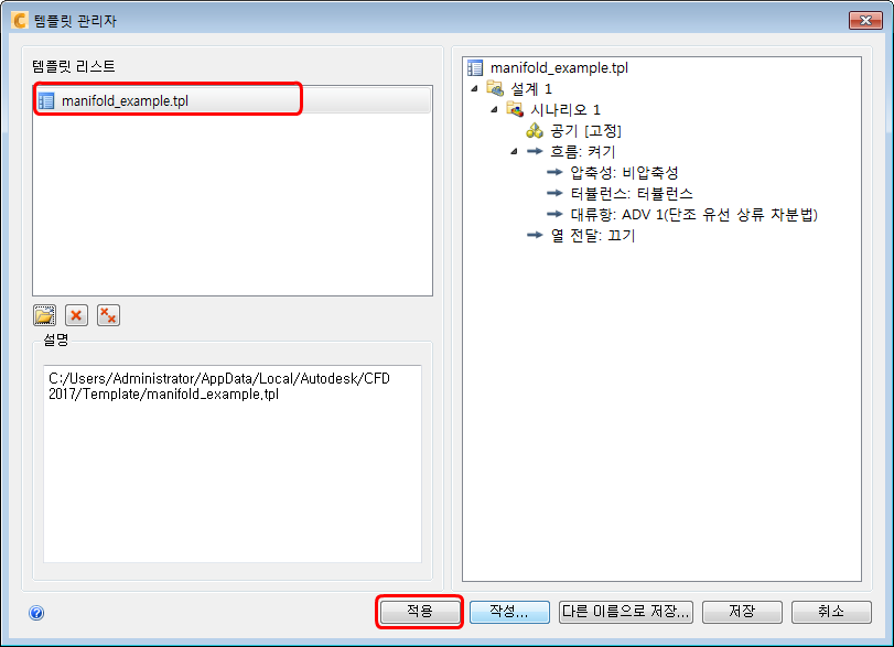 faucet_example.tpl을 선택하고 적용을 클릭합니다.