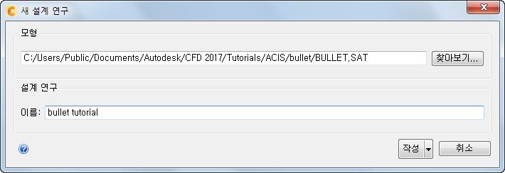 파일 관리자 대화상자에서 Users\Public\Public Documents\Autodesk\CFD 2018\Tutorials\<파일 유형>\bullet으로 이동합니다.