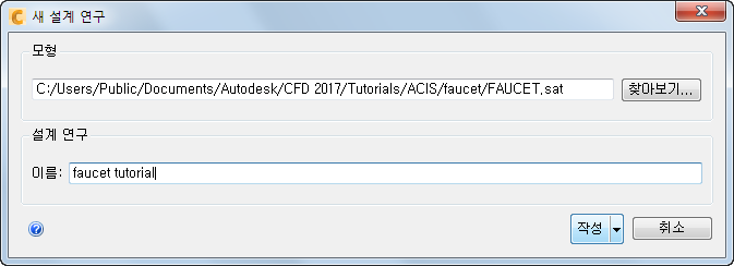 파일 관리자 대화상자에서 Users\Public\Public Documents\Autodesk\CFD 2018\Tutorials\<파일 유형>\faucet으로 이동합니다.