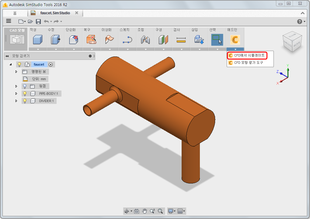 애드인 메뉴를 확장하고 CFD에서 시뮬레이트을 선택합니다.
