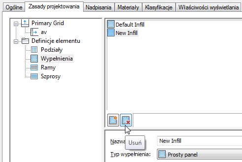 Za pomocą tej procedury można z listy Definicje wypełnień usunąć definicje, które nie są już potrzebne. Przy kasowaniu definicji istnieje kilka ograniczeń. Nie można na przykład usunąć definicji, która aktualnie jest przypisana komórce. Ponadto nie można usunąć domyślnej definicji wypełnienia, chociaż można ją zmodyfikować.
