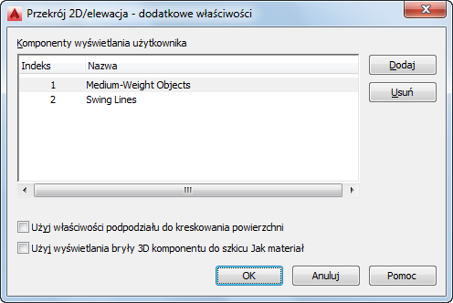 Procedura ta umożliwia określenie, czy zastosować komponent wyświetlania materiału bryły 3D dla szkicu w elewacji 2D.