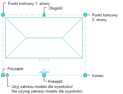 Można także zdefiniować głębokość elewacji (jej długość), zmieniając długość boków obwiedni elewacji na palecie właściwości.
