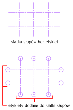 Jeśli na linii siatki istnieje etykieta i zostanie dodana inna, istniejąca etykieta i jej wartość zostaną zachowane. Powielone etykiety nie są tworzone na końcach siatki.