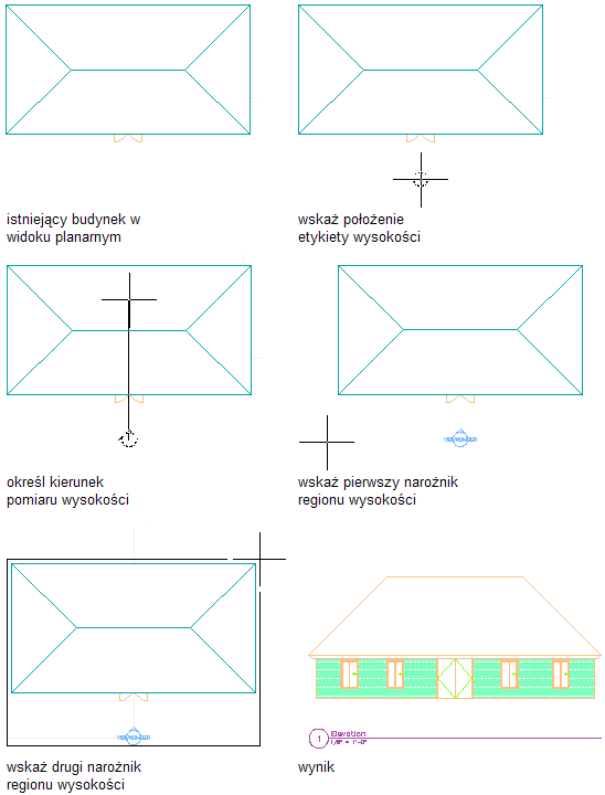 Pierwszym krokiem w tworzeniu elewacji jest narysowanie linii elewacji odpowiedniej dla modelu budynku. Linia elewacji definiuje zakres widoku elewacji modelu budynku.