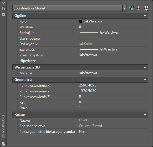 Uwaga: Dołączanie modelu koordynacji nie jest obsługiwane w systemach 32-bitowych. Do pracy z modelami koordynacji wymagany jest system 64-bitowy z włączonym przyspieszeniem sprzętowym.