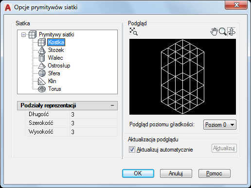 Umożliwia ustawienie dla każdego wybranego typu prymitywu siatki domyślnej liczby podziałów na każdą stronę.
