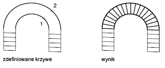 Dla krzywych otwartych konstrukcja siatki prostokreślnej rozpoczyna się od punktów określonych na krzywych.