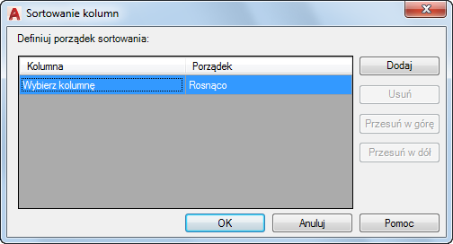 Określa porządek sortowania kolumn. Sekcja Kolumna zawiera nazwy kolumn ze strony Wygładź dane.