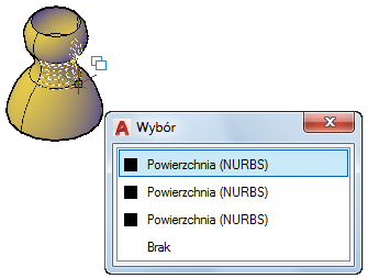 Jeśli filtr wyboru podobiektu jest włączony, nie trzeba naciskać i przytrzymywać klawisza Ctrl przed wybraniem powierzchni, krawędzi lub wierzchołka modelu 3D. Aby jednak wybrać cały obiekt, należy wyłączyć filtr. Ustawienie bieżącego filtru podobiektów jest przechowywane w zmiennej systemowej SUBOBJSELECTIONMODE.