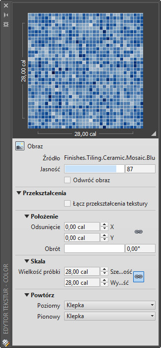 Umożliwia edycję właściwości obrazu lub tekstur proceduralnych.