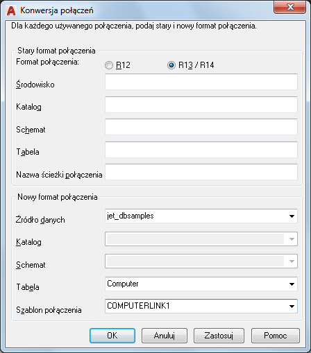 Aby przekształcić połączenia dla wersji programu 13 i 14