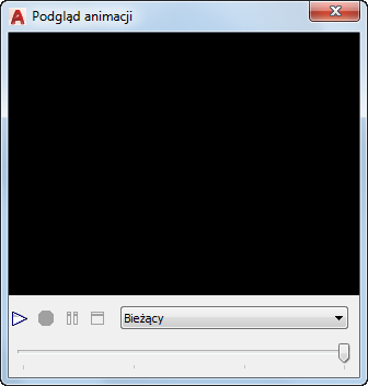 Wyświetla podgląd animacji utworzonej w oknie dialogowym Animacje na torze ruchu lub podczas spaceru bądź przelotu przez animację i nagrywania jej za pomocą wstążki.