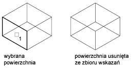 Określa powierzchnie, które zostaną usunięte. Powierzchnia musi znajdować się w położeniu, które można wypełnić otaczającymi powierzchniami po usunięciu danej powierzchni.