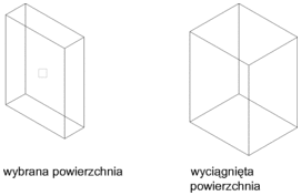 Przesuwa wybraną powierzchnię obiektu 3D na określoną wysokość lub odległość. Można wybrać jednocześnie kilka powierzchni.