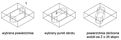 Powoduje obrót powierzchni zgodnie z określonym kątem i daną osią.