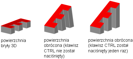 Za pomocą poleceń PRZESUŃ, OBRÓĆ i SKALA można modyfikować powierzchnie w taki sam sposób jak w przypadku innych obiektów. Zaznaczając powierzchnię bryły naciśnij i przytrzymaj klawisz Ctrl.