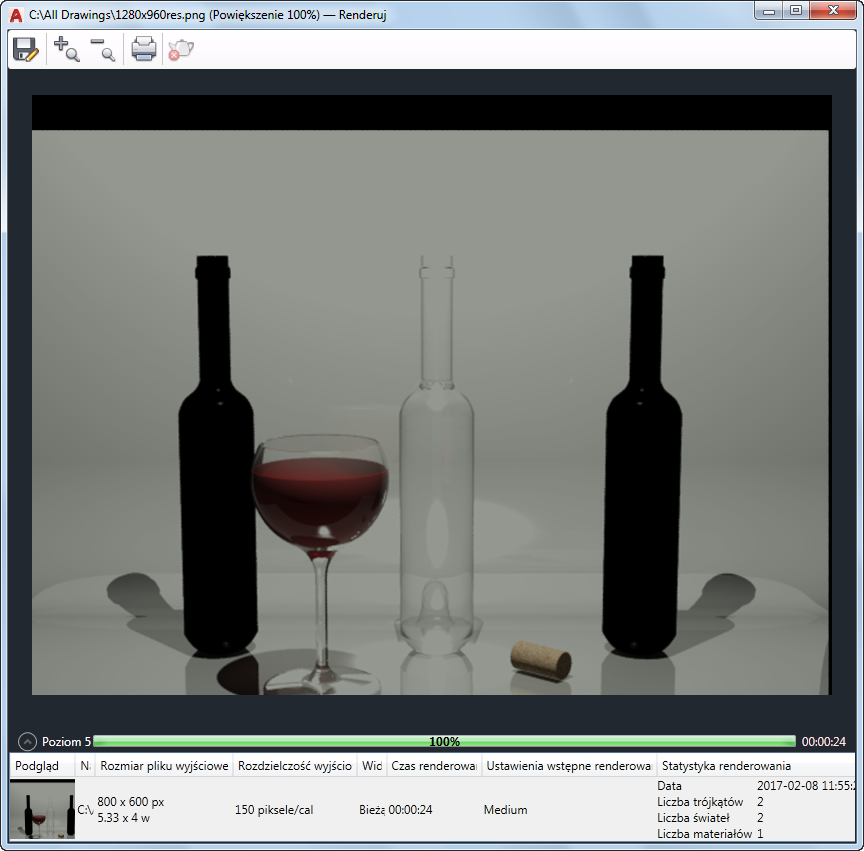 Renderowany obraz dowolnego rysunku jest wyświetlany zawsze w odpowiednim oknie Renderuj.