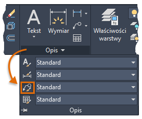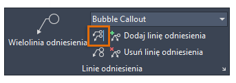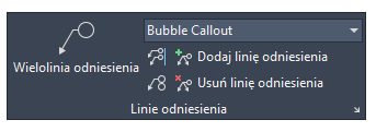 Na wstążce kliknij kartę Opisz i odszukaj panel Linie odniesienia. Na panelu widać, że bieżącym stylem wielolinii odniesienia jest styl Objaśnienie typu chmurka.