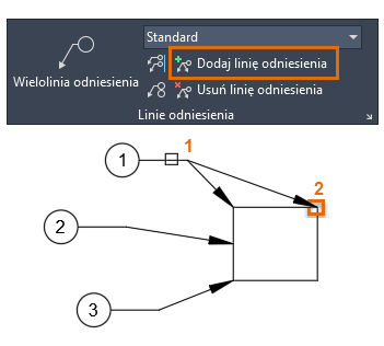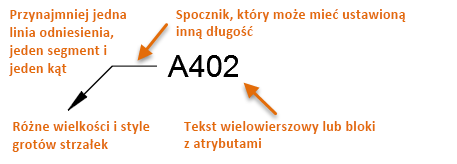 Dostęp do różnych typów etykiet i objaśnień za pomocą stylów wielolinii odniesienia.