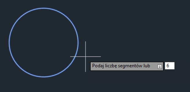 Użyjmy ponownie polecenia PODZIEL, tym razem jednak dzieląc okrąg. Załóżmy, że chcemy go podzielić na sześć równych „kawałków”, jak pokazano na rysunku.