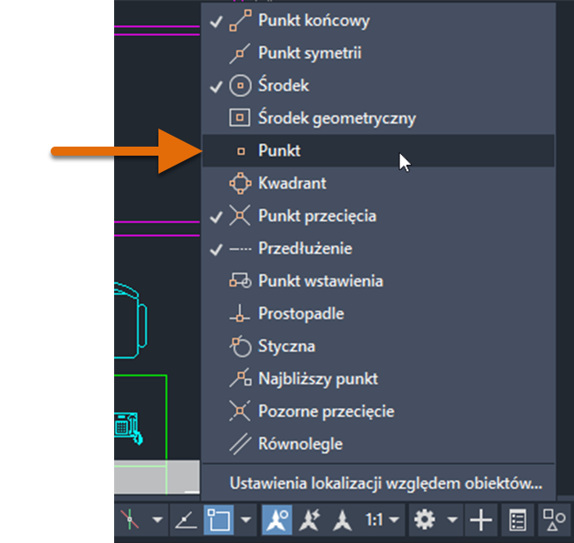 Mając utworzone punkty, upewnimy się teraz, że włączony jest również tryb lokalizacji względem obiektu punktu, co umożliwi uzyskanie tych punktów.