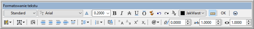 Pasek narzędzi Formatowanie tekstu jest wyświetlany podczas każdego tworzenia lub edycji obiektu tekstu wielowierszowego. Ten pasek narzędzi nie jest dostępny w przypadku tekstu jednowierszowego.