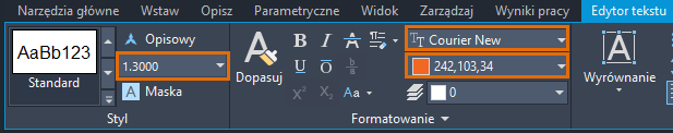 Aby zmienić formatowanie znaków w tekście wielowierszowym, na karcie kontekstowej wstążki Edytor tekstu wykonaj następujące czynności: