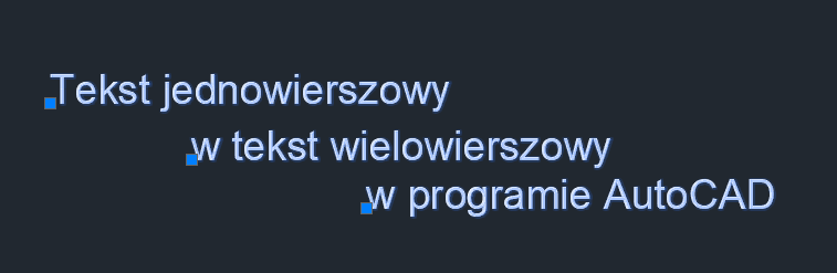 Uwaga: Aby przekształcić tekst wielowierszowy w oddzielne obiekty tekstu jednowierszowego, w wierszu polecenia wprowadź r (ROZBIJ) i wybierz obiekty tekstu wielowierszowego do rozbicia.