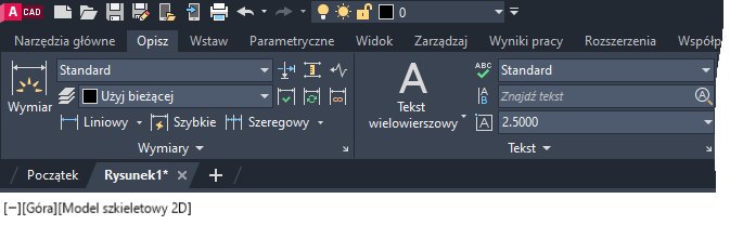 W tym ćwiczeniu zostanie zmienione położenie karty Opis i panelu Wymiary.