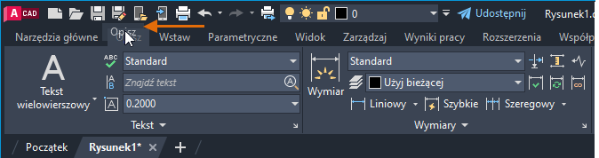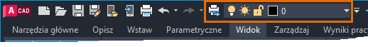 W tym ćwiczeniu do paska narzędzi szybkiego dostępu zostaną dodane narzędzie Wydruk wsadowy i lista rozwijana Warstwy, natomiast usunięte zostanie narzędzie Wydruk.