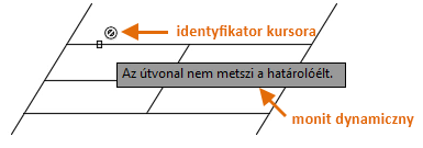 W programie AutoCAD wyświetlane są komunikaty o błędach lub powiadomienia o przyczynach niemożności wykonania określonych operacji, zazwyczaj w oknie poleceń. Podgląd polecenia z identyfikatorami kursora i włączoną funkcją wprowadzania dynamicznego informuje, czy można wykonać bieżącą operację i jaki może być wynik, bez konieczności zakończenia polecenia lub wykonania oczekiwanej operacji.