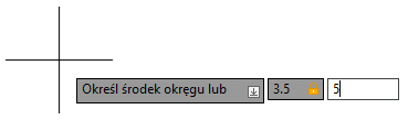 Bezwzględna wartość współrzędnych wynosząca 3.5,5 zostanie użyta jako punkt środkowy okręgu, a następny monit polecenia OKRĄG zostanie wyświetlony w etykiecie wprowadzania dynamicznego. Uwaga: Zamiast naciskać klawisz Enter, aby określić wartość współrzędnej 2D, można dodać przecinek, a następnie wprowadzić liczbę dotyczącą wartości współrzędnej Z.