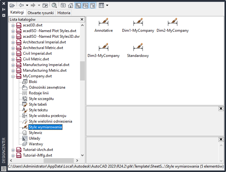 Rozpocznij od stylów wymiarowania. W tym celu w prawym górnym panelu kliknij dwukrotnie opcję Style wymiarowania.