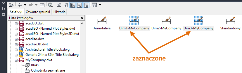 Zostaną wyświetlone style wymiarowania zdefiniowane w rysunku lub szablonie.