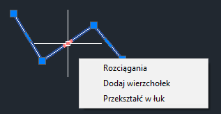 Spróbuj wykonać te same czynności w przypadku łuków, okręgów i polilinii, wybierając różne uchwyty różnych obiektów.