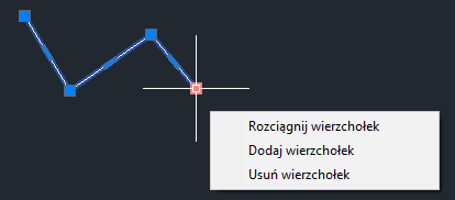 Ustaw kursor na jednym z uchwytów punktu środkowego odcinka, aby wyświetlić jego menu uchwytu.