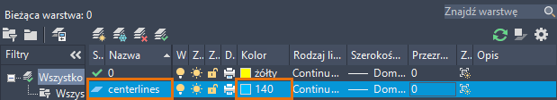 CENTERLAYER to nadpisana warstwa, która dotyczy tylko znaczników środka i linii środkowych utworzonych przy użyciu poleceń ZNACZNIKŚRODKA i OŚSYMETRII.