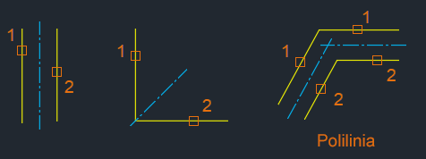 | OŚSYMETRII | Tworzy geometrię osi symetrii skojarzoną z wybranymi segmentami linii i liniowych polilinii. |