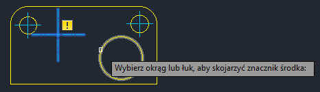 Jeśli jednak znacznik środka zostanie odsunięty od okręgu, zostanie on także odłączony. Jeśli znacznik środka nie jest połączony z obiektem, wyświetlany jest żółty identyfikator, który wskazuje, że jest on odłączony.