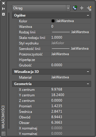 Podczas oglądania właściwości obiektów programu AutoCAD w programie AutoCAD LT niektóre z nich mogą być niedostępne.