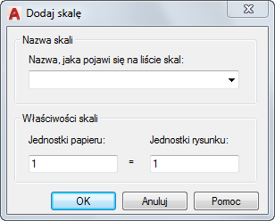 Połączone z wartością jednostek rysunku określają stosunek definiujący skalę podglądu lub wydruku.