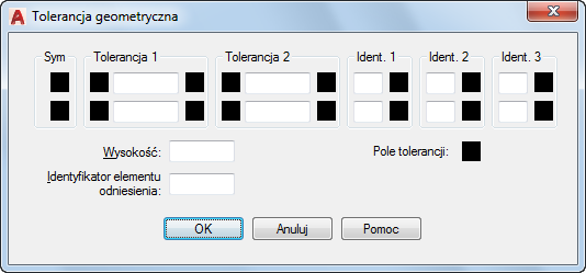 Po wybraniu charakterystycznych symboli geometrycznych zamykane jest okno dialogowe Tolerancja geometryczna i wyświetlany poniższy monit: