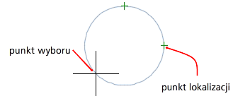 Lokalizuje do najbliższego punktu na obiekcie takim jak łuk, okrąg, elipsa, łuk eliptyczny, linia, punkt, polilinia, półprosta, splajn lub prosta.